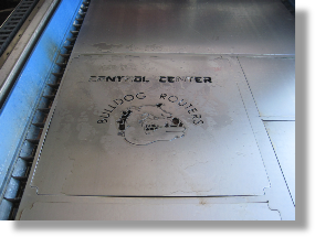 Using our CNC Plasma Machine we decided to customize the front of the main door and cut the Bull Dog Router Logo into the steel sheet that will cover the front door.