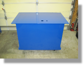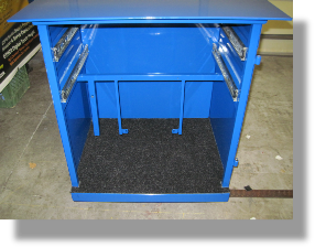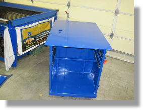 You can also see the two holes that we drilled in the top one for the vacuum system and one for the cables. The top of the table is wider than the cart to provide some protection for the cart when rolling around the shop.