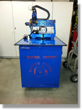 The Router is situated on the back portion of the cart with a little space up front for laying out tools or for expansion in the future to the longer bed version.